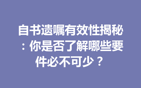 文章目录▼CloseOpen 自书遗嘱的有效性有哪些关键要素? 如果自书遗嘱没有日期会有什么影响…